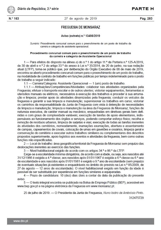 Aviso n.º 13498/2019